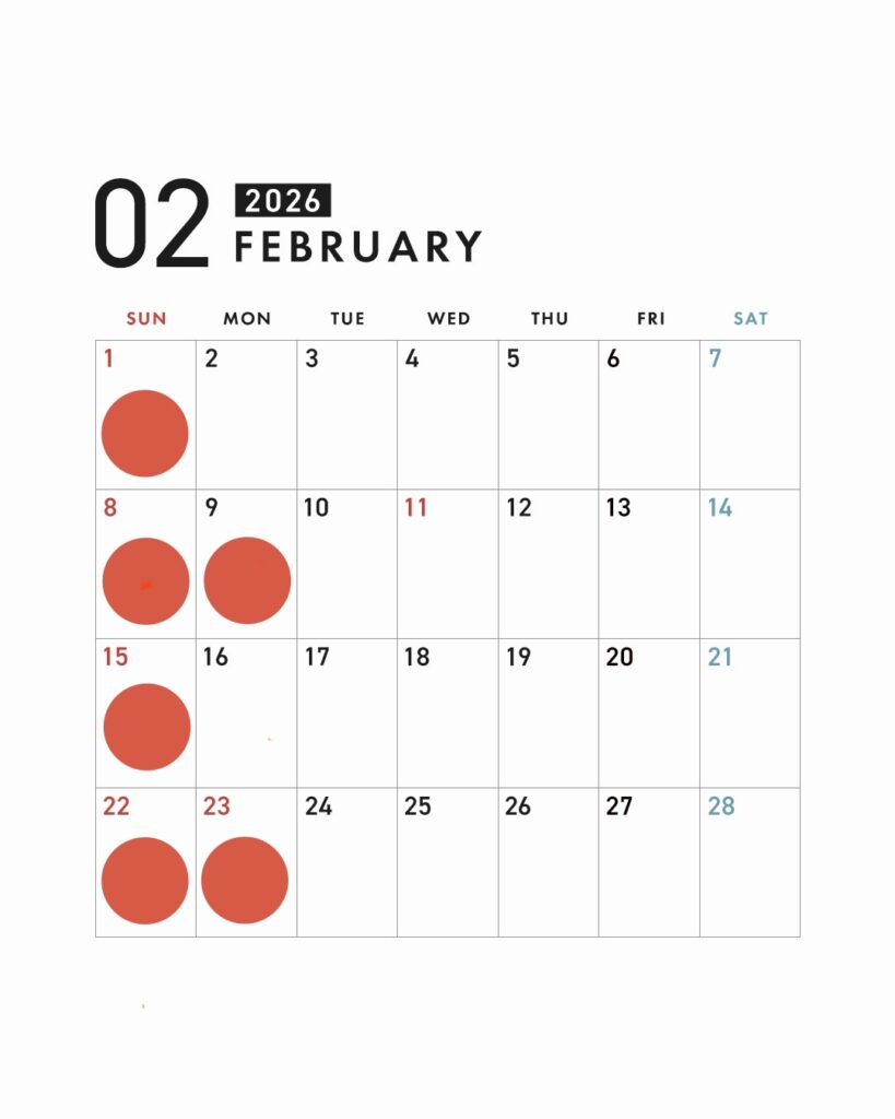 2月の休業日